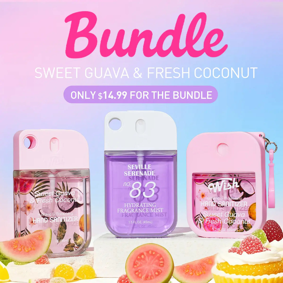 Sweet Guava Hand Sanitizer Duo (1.2 oz & 1.5 oz) + 1.5 oz Seville Serenade Body Mist