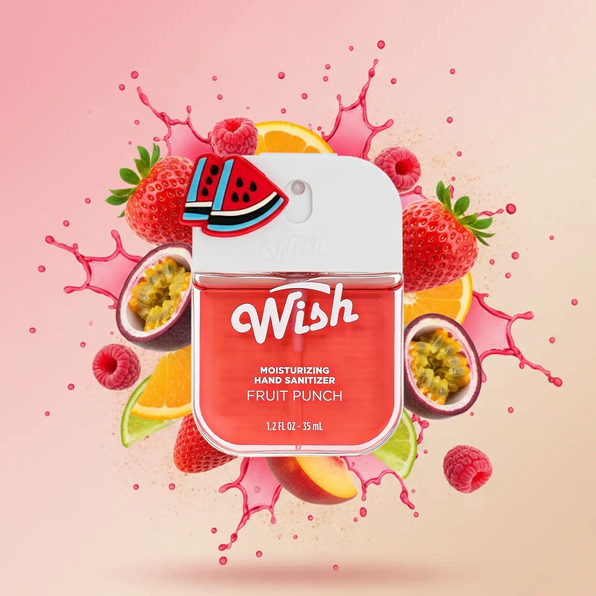 Sun-kissed pineapple juice, sweet citrus, and crisp apple blend into a summer smoothie vibe that instantly transports you to island mode.Feel the energy by the pool, the refreshing coolness of a smoothie, and the vibe of a tropical beach. The 70% alcohol formula effectively kills germs and cleans your hands without needing water. Comes with a detachable silicone charm for endless DIY fun.