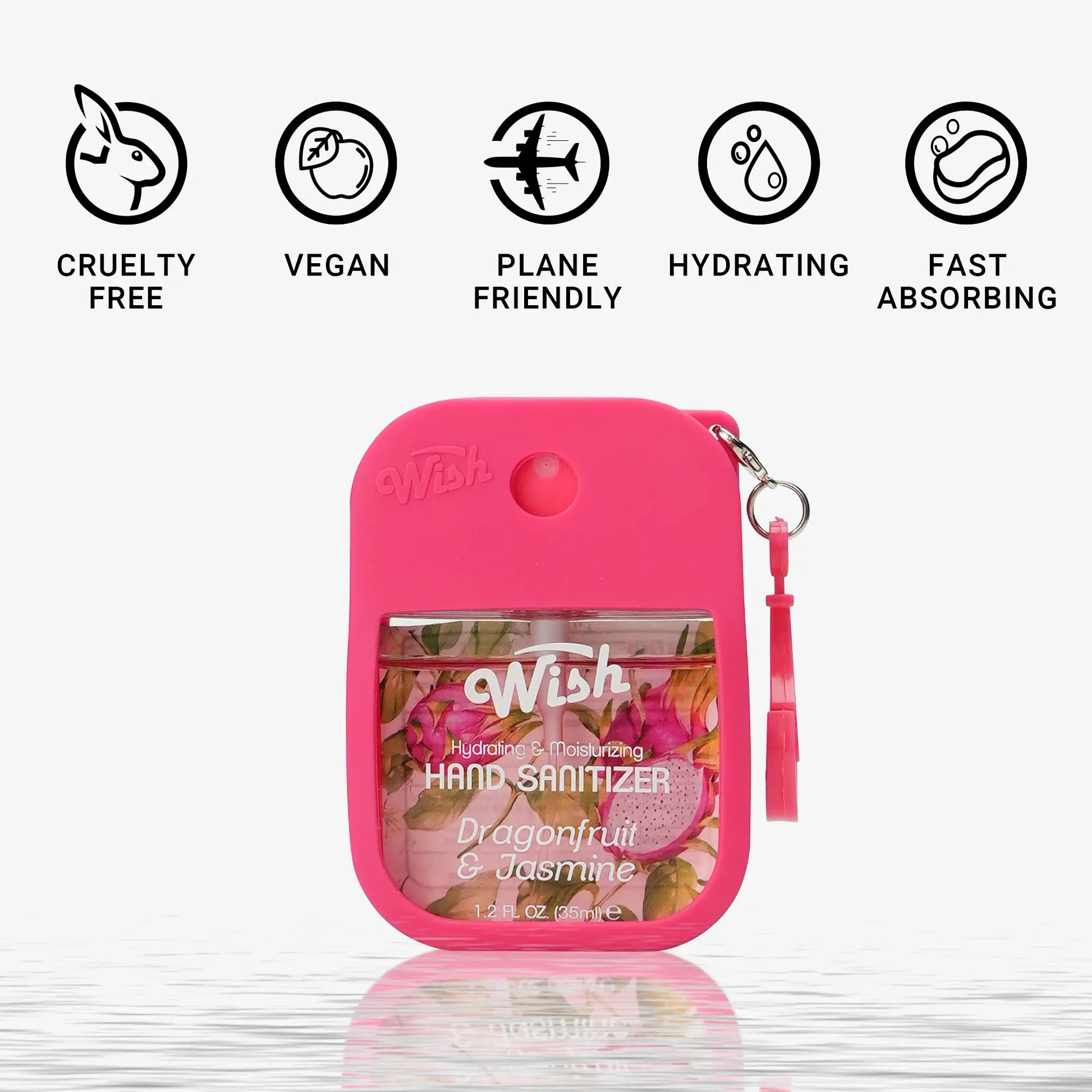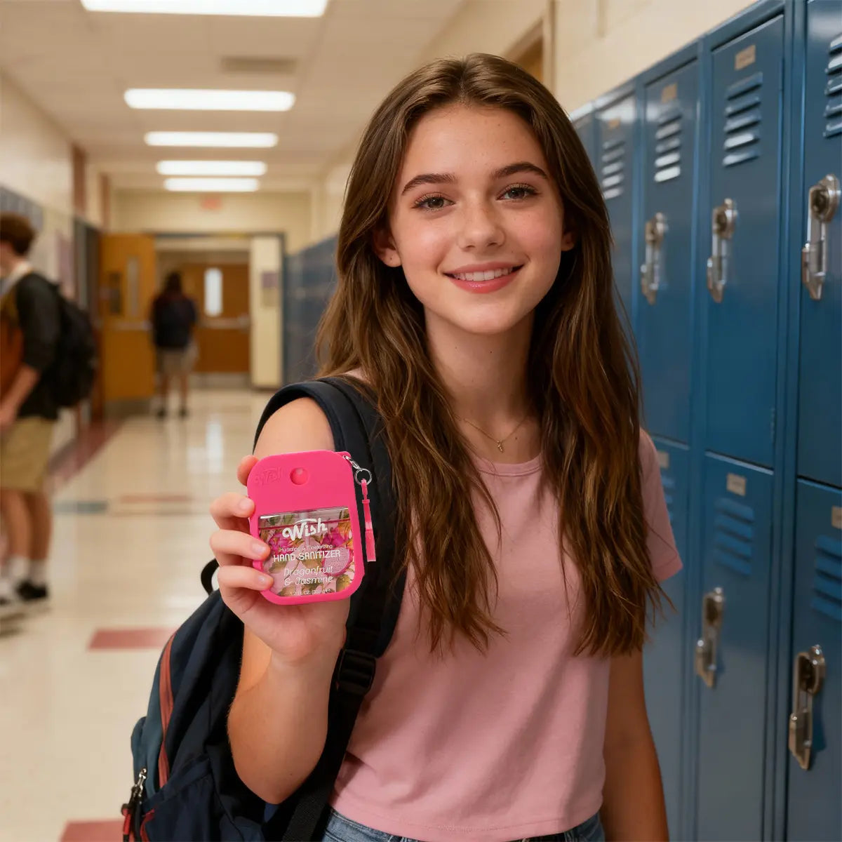 Trendy lanyard loop design meets hydrating hero status! Clip it to your bag or wear it crossbody with the matching pink strap. Clean hands, heavenly scent, zero fuss.
