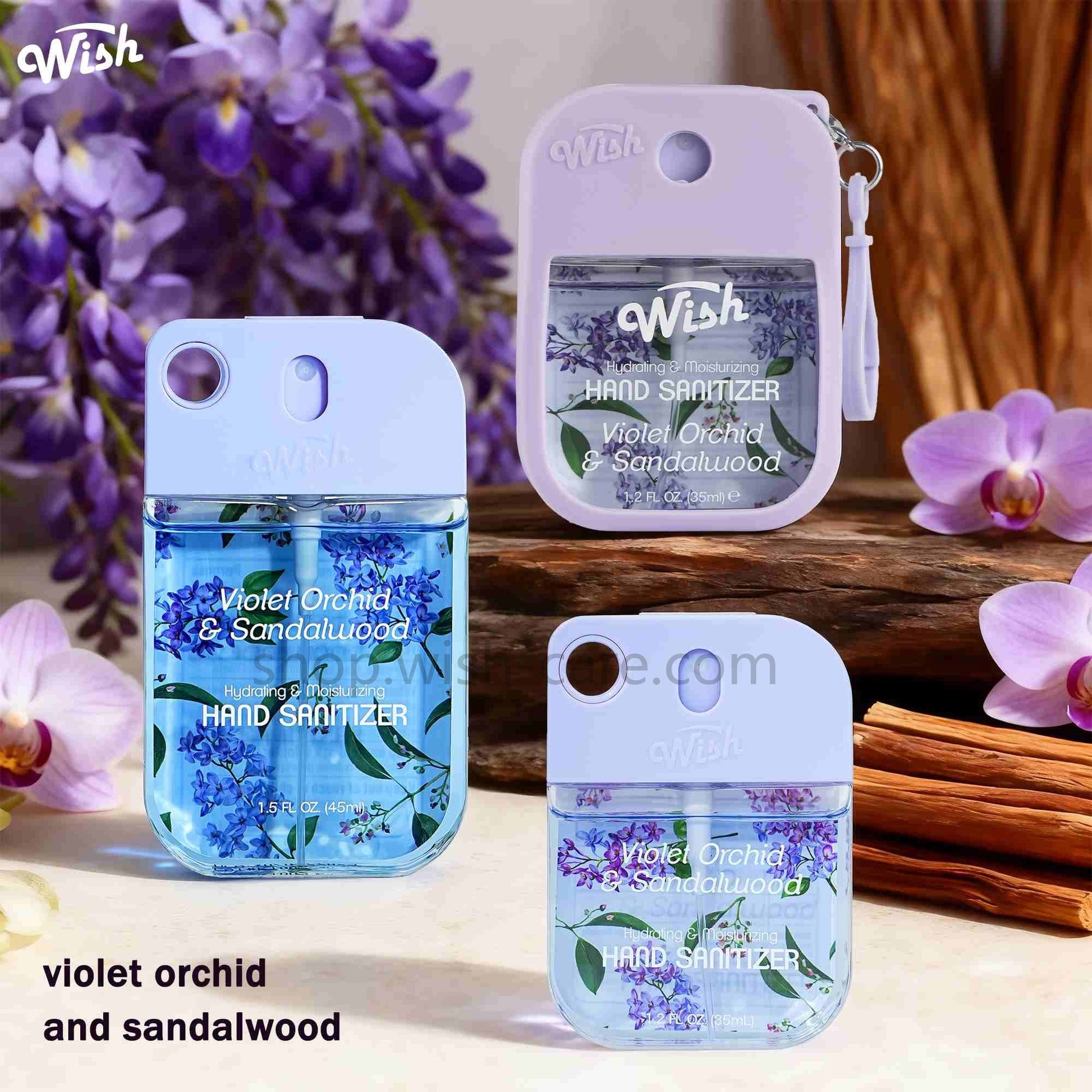 Wish Violet Orchid & Sandalwood Hand Sanitizer is your daily escape—think blooming violets and creamy sandalwood vibes in a pocket-sized powerhouse that cleanses + calms. It's giving spa-day energy, moonlit garden vibes, and that just-left-the-salon softness.